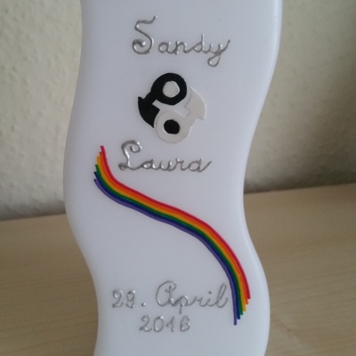Dann lassen Sie folgende Bilder auf sich wirken und ich stelle Ihre eigene individuelle Hochzeitskerze zusammen, die nicht nur den Namen und die Daten des Brautpaares enthält, sondern auch thematisch ganz auf Braut und Bräutigam abgestimmt werden.